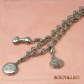 ワンちゃんグッズモチーフのチャームを3つも付けた携帯ストラップにもなるブレスレット