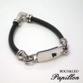 パピヨンのシルエットをシルバーに色入れした、レザーとシルバーのスタイリッシュなブレスレットです。