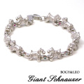 リアルなジャイアント・シュナウザー犬が手首の周りをぐるりと囲んでとても愛らしいブレスレット。シュナウザーと交互に輝くピンクトルマリン・ブルートパーズが美しさを更に引き立てます。クールに装いたい時は、ブルートパーズを表にして、キュートな気分の時は、ピンクトルマリンを表にしたりとリバーシブルで楽しめるブレスレットです。